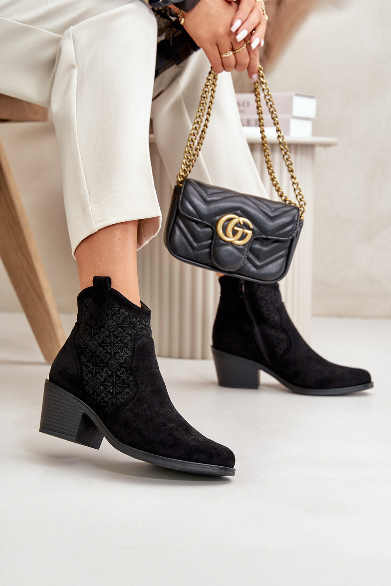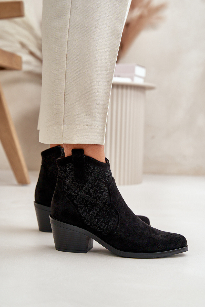 Dámské boty vyrobené z měkkého a příjemného na dotek eko semiše. Děrovaný svršek jim dodává lehkost a eleganci, což je činí ideálními na teplejší dny. Umístěny na stabilním podpatku. Tento model má praktické zapínání na zip, což usnadňuje obouvání a svlékání obuvi. Špičky jsou špičaté. Ideální jak pro každodenní, tak pro elegantnější outfity. To je univerzální doplněk do šatníku každé módní ženy. Při výběru velikosti se řiďte tabulkou velikostí.