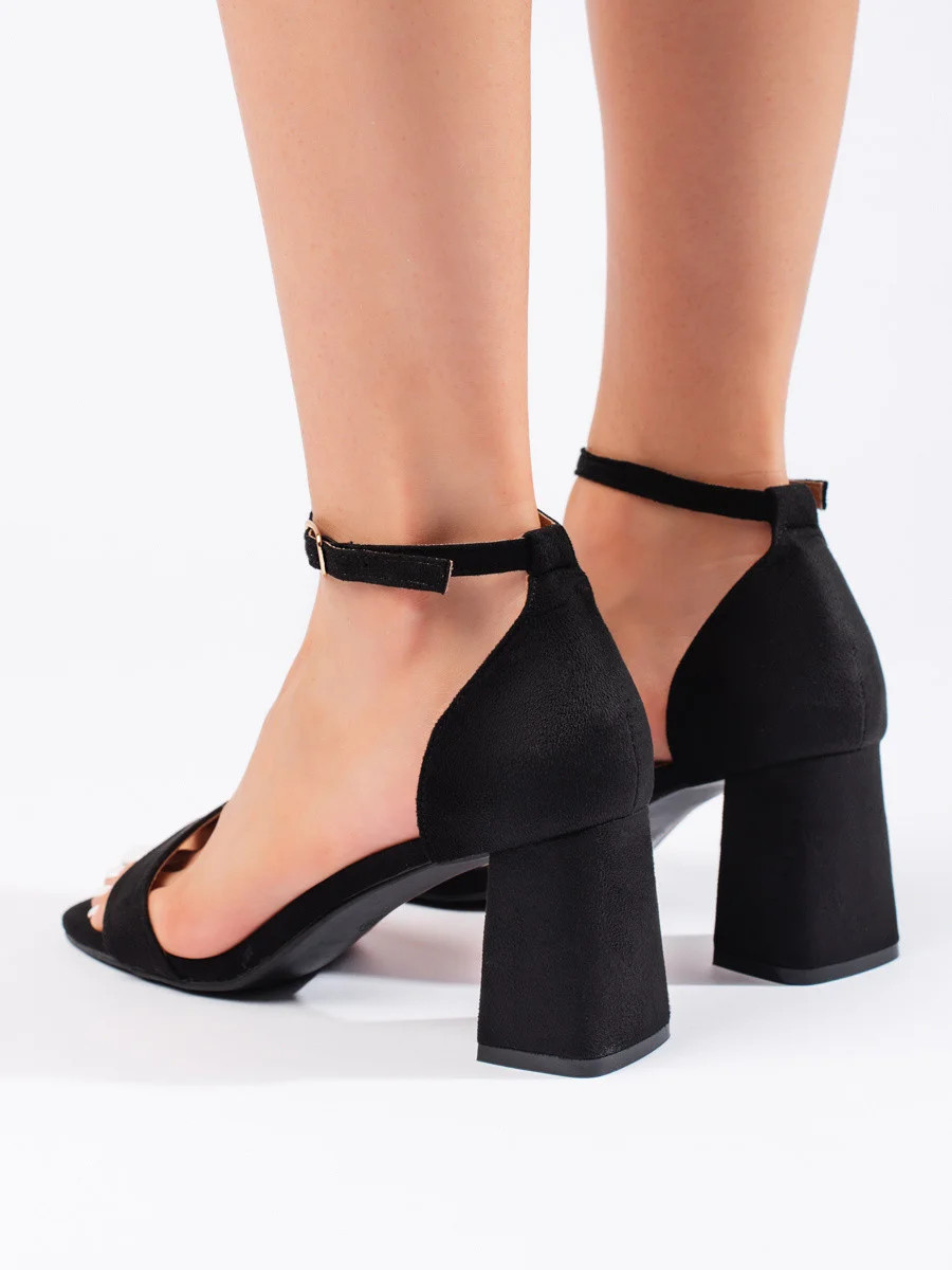 Přidání recenze k Designové černé dámské sandály na širokém podpatku