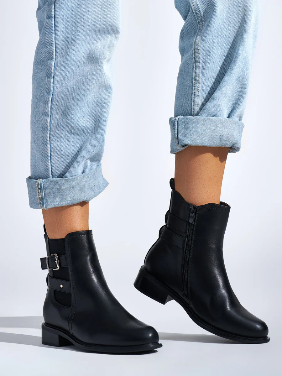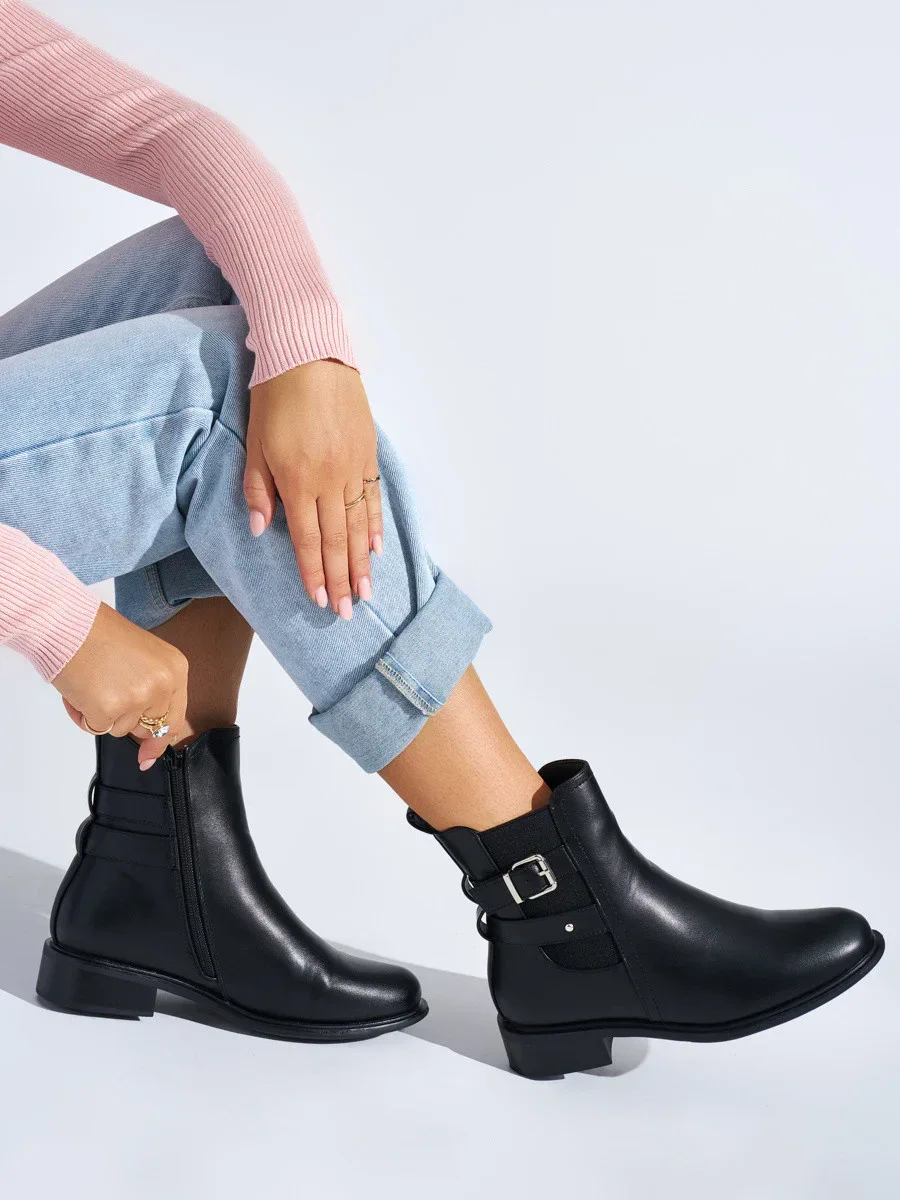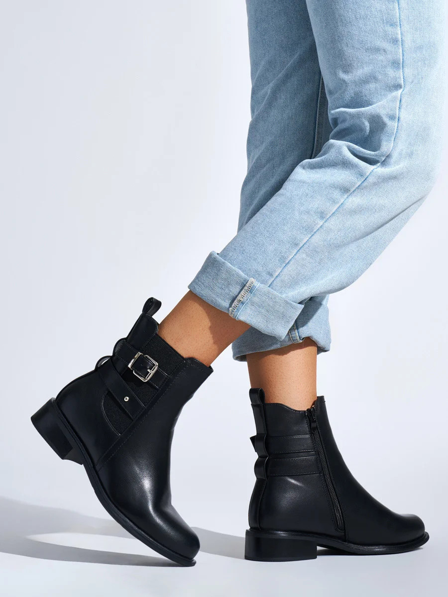 Přidání recenze k Designové černé kotníčkové boty dámské na plochém podpatku