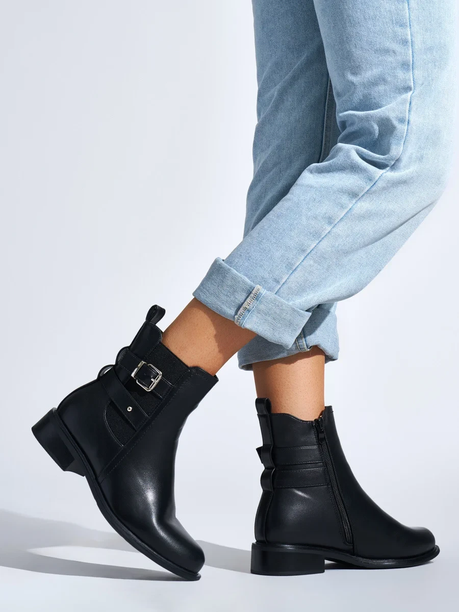 Designové černé kotníčkové boty dámské na plochém podpatku