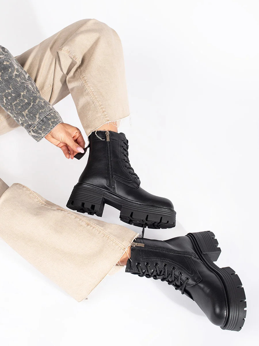 Přidání recenze k Designové dámské černé kotníčkové boty platforma