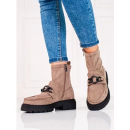 Přidání recenze k Designové dámské kotníčkové boty hnědé na plochém podpatku