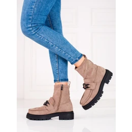 Přidání recenze k Designové dámské kotníčkové boty hnědé na plochém podpatku
