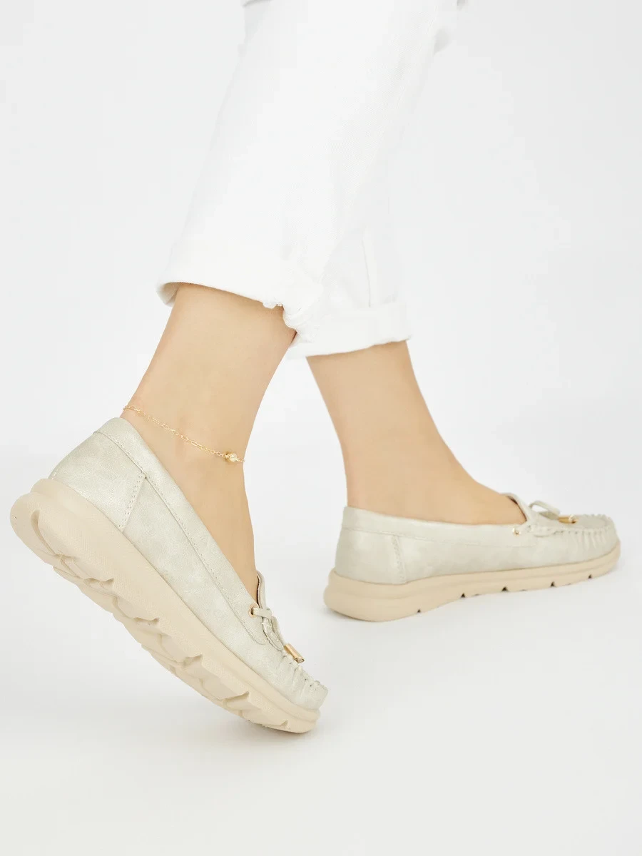 Přidání recenze k Designové dámské mokasíny zlaté platforma