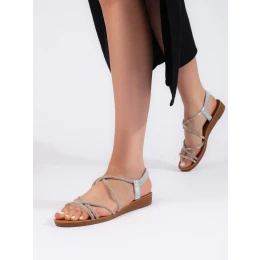 Přidání recenze k Designové dámské stříbrné sandály na plochém podpatku