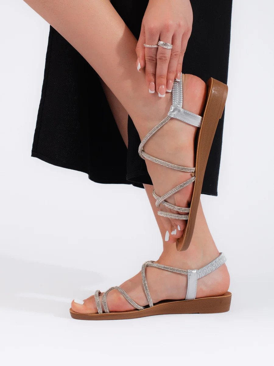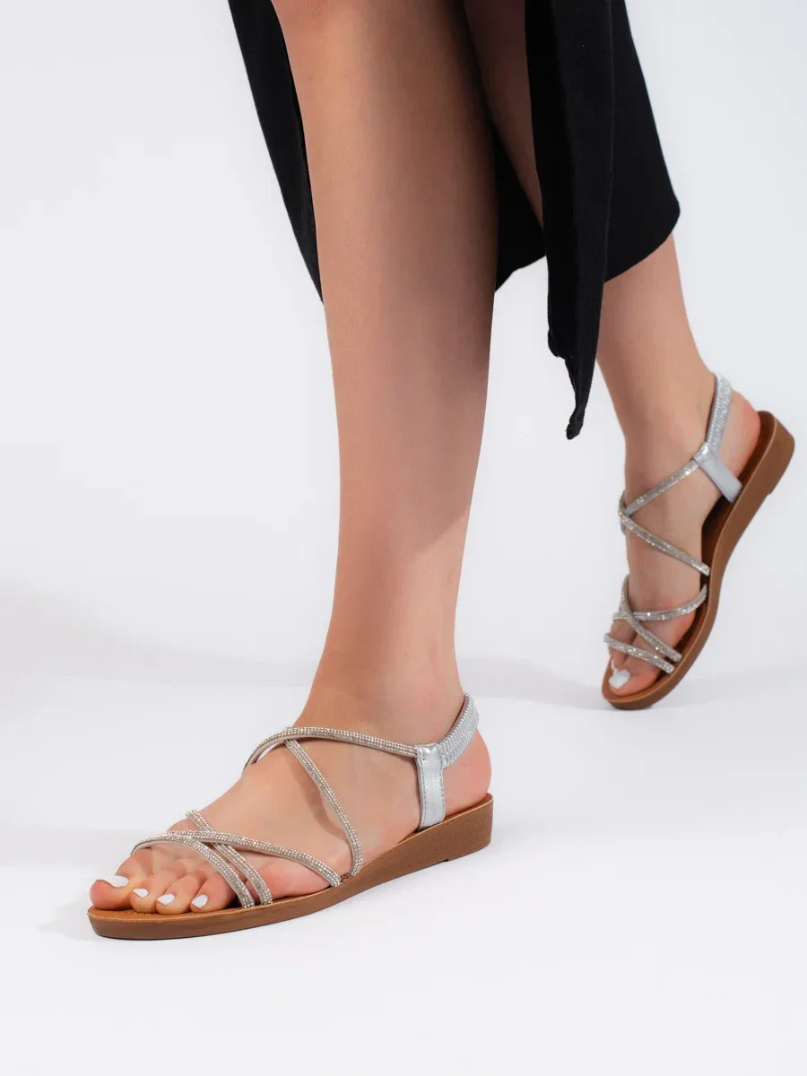Designové dámské stříbrné sandály na plochém podpatku