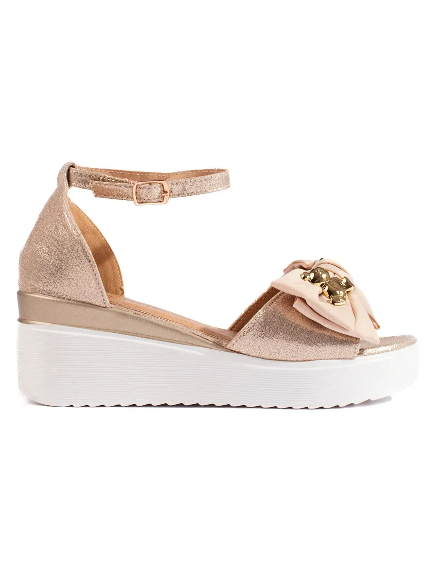 Designové dámské zlaté sandály na klínku