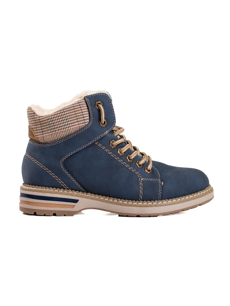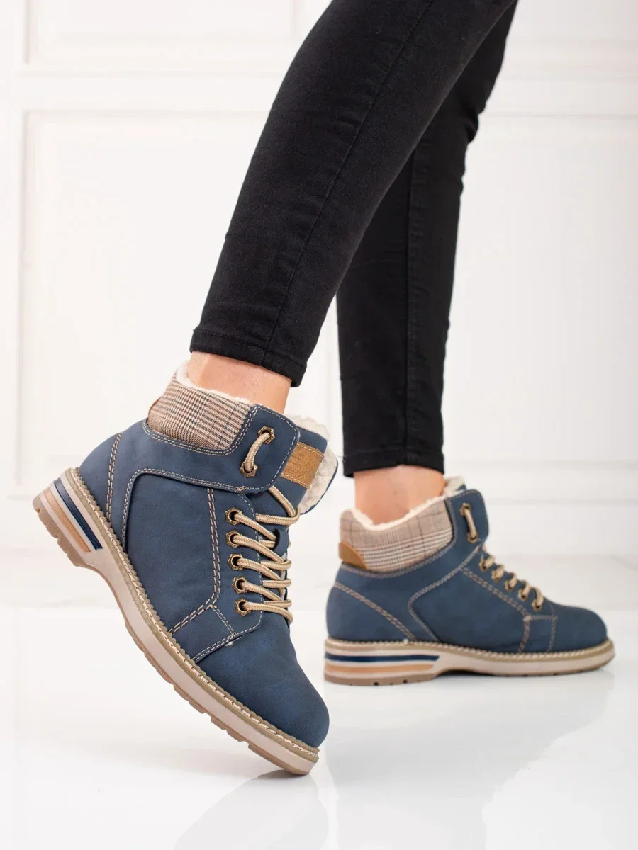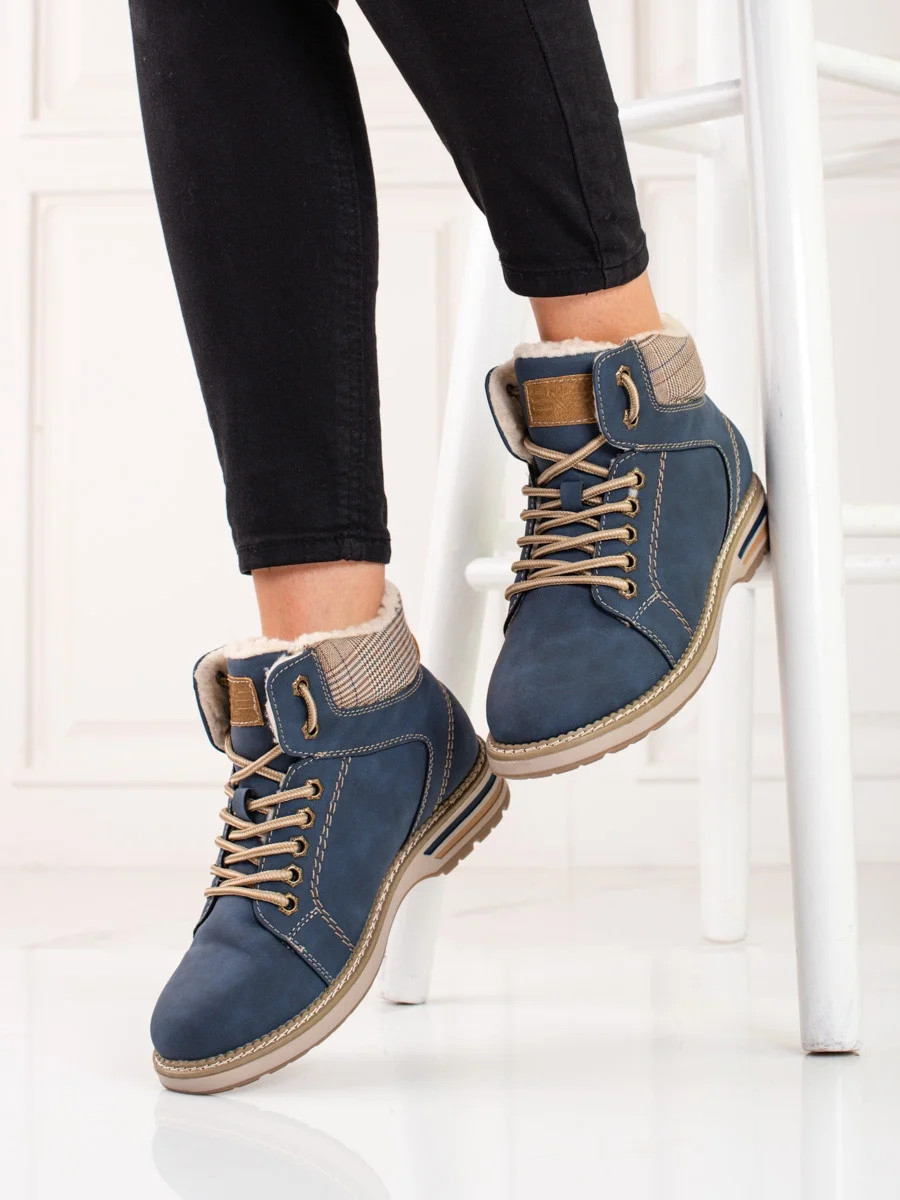 Přidání recenze k Designové kotníčkové boty modré dámské na plochém podpatku