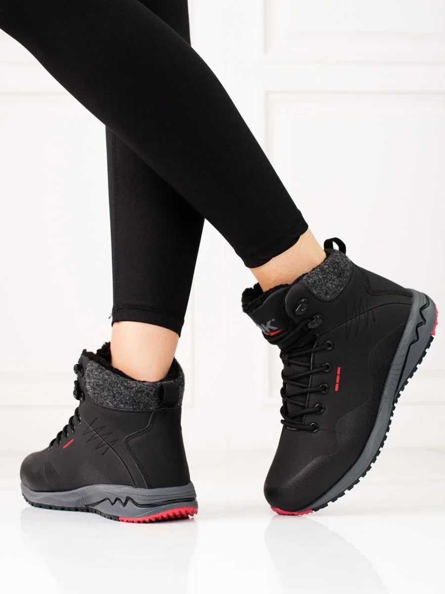 Designové trekingové boty dámské černé bez podpatku