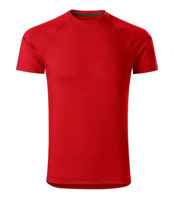 hladký strečový rychleschnoucí materiál ideální pro sport a pohybové aktivity přiléhavý střih tvarovaný bočními díly dekorativně prošité ploché švy úzký lem průkrčníku z vrchového materiálu vnitřní část průkrčníku začištěna kontrastní páskou krátké raglánové rukávy tvarovaný a mírně prodloužený zadní díl etiketa v podobě odnímatelné nálepky vhodné pro sublimační potisk (světlé barvy)