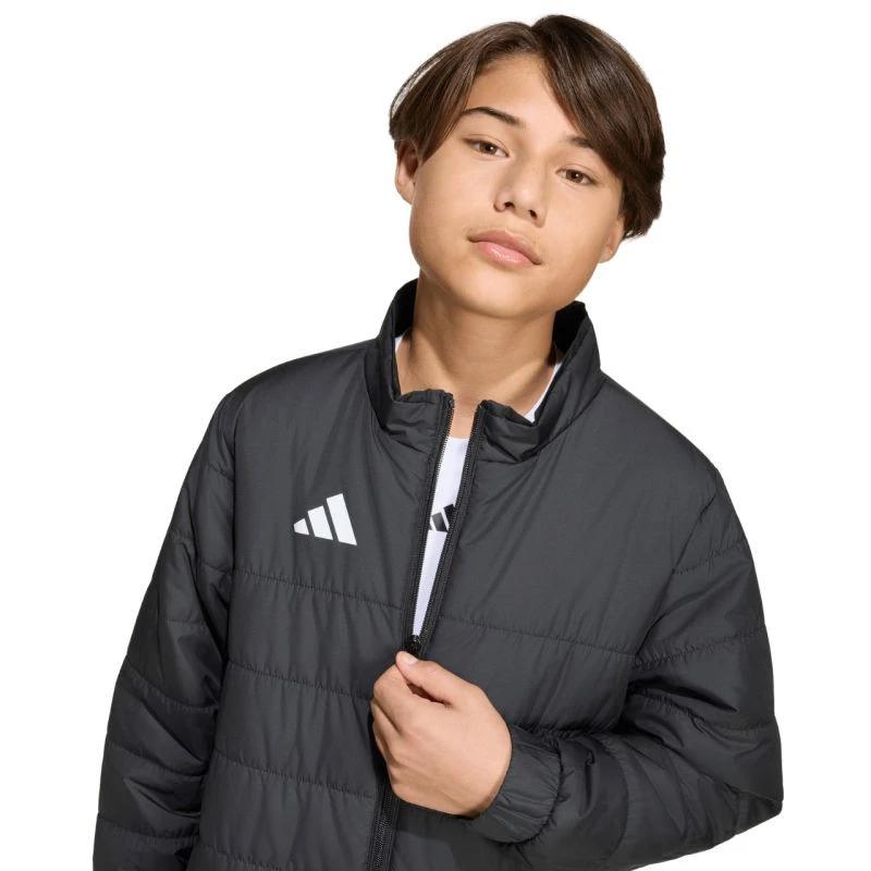 Dětská bunda adidas Entrada 26 Light black JZ9124 Dětská bunda adidas ti umožní předvést svůj fotbalový styl i za brankovou čárou. Prošívaná konstrukce s rovnoměrně rozloženou syntetickou výplní. Standardní střih. Zip po celé délce. Boční kapsy na zip. Elastické manžety. Materiál: 100% recyklovaný polyester.