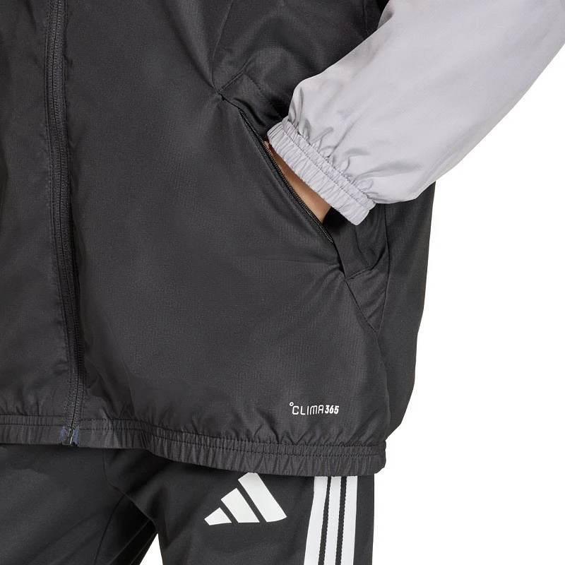 Dětská bunda adidas Tiro 26 Competition All Weather černá KB0156 Dětská bunda adidas Tiro je ideální na trénink. Zip po celé délce pro rychlé oblékání. Nášivka na ochranu brady. Nenastavitelná kapuce. Vodoodpudivé vlastnosti. Větruodolná. Technické specifikace:- materiál: 100% polyester (recyklovaný)- standardní střih- zip po celé délce- technologie CLIMA365- přední kapsy na zip- kapuce- elastické manžety a spodní lem.