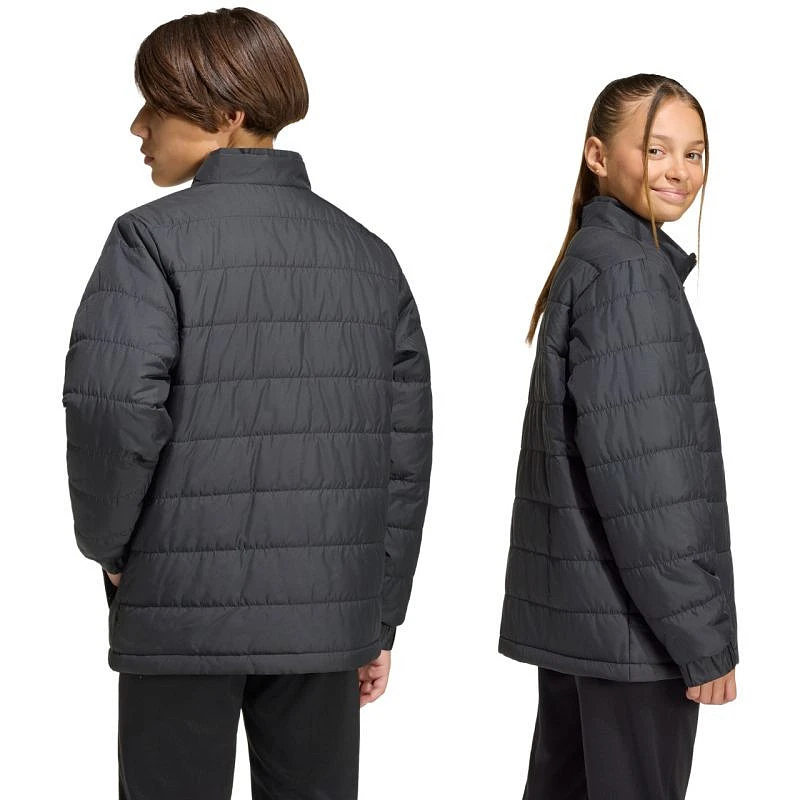 Dětská bunda adidas Entrada 26 Light black JZ9124 Dětská bunda adidas ti umožní předvést svůj fotbalový styl i za brankovou čárou. Prošívaná konstrukce s rovnoměrně rozloženou syntetickou výplní. Standardní střih. Zip po celé délce. Boční kapsy na zip. Elastické manžety. Materiál: 100% recyklovaný polyester.