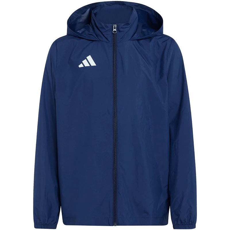 Adidas Entrada 26 Multi dětská bunda navy blue KQ9073 Dětská bunda adidas, větrovka, je určena k ochraně před větrem a lehkým mrholením.Technické údaje:- Vnější vrstva: 100% polyester (recyklovaný)- Standardní střih- Lehký, tenký materiál- Bez kapes- Stahovací, neodnímatelná kapuce- Elastické manžety- Zip po celé délce- Malé logo