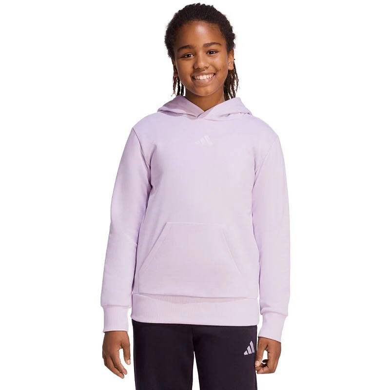 Dětská mikina adidas Essentials Hoody světle fialová KS0366 Tato mikina adidas je navržena s ohledem na pohodlí vašeho dítěte.Standardní střih.Bavlněný úplet je měkký na dotek.Syntetické vlákno dodává odolnost.Lehká izolace.Žebrované manžety a spodní lem.Nenastavitelná kapuce.71 % bavlna, 29 % recyklovaný polyester.