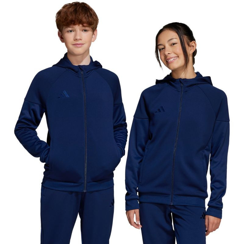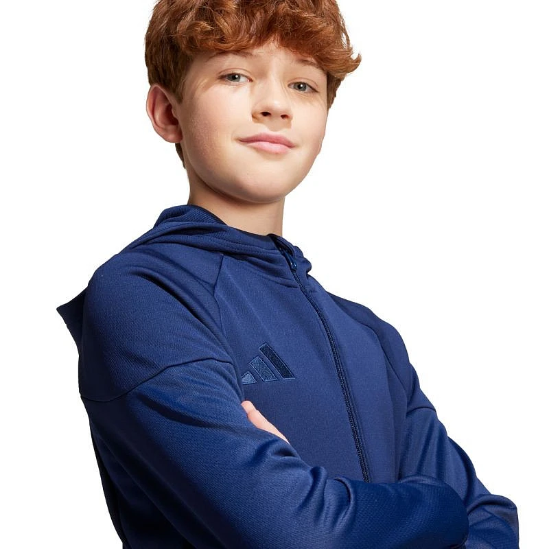 Dětská mikina adidas Tiro 25 v tmavě modré barvě JC5127 dětská mikina adidas ti zajistí pohodlí i mimo hřiště díky designu inspirovanému fotbalem. měkká fleecová tkanina s technologií Aeroready, která pomáhá odvádět vlhkost. dlouhý jednosměrný zip s ochrannou nášivkou. standardní střih s žebrovanými lemy. velkorysá nenastavitelná kapuce. přední kapsy na zip. tento produkt je vyroben ze 100% recyklovaných materiálů. materiál: 100% recyklovaný polyester.