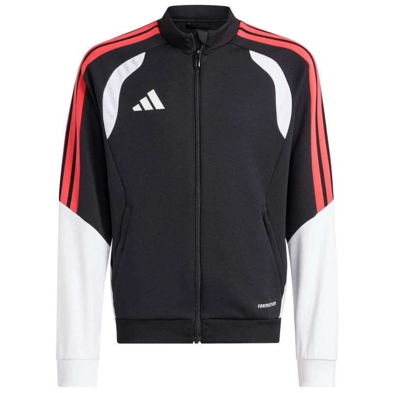 Dětská fotbalová mikina adidas Tiro 26 Competition Training černá, bílá a červená KC3791 Tato dětská fotbalová mikina adidas je ideální na trénink. Stojatý límec. Dlouhý zip s ochrannou nášivkou na bradě. Přiléhavý střih. Technologie Formotion pro ještě lepší pohyblivost. Síťované panely na hrudi. Pruhy na horních rukávech. Manžety s pružnými rukávy. Reliéfní detaily na ramenou a bocích. Materiál: 100% recyklovaný polyester.