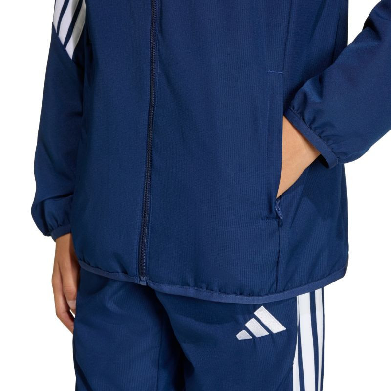 Dětská mikina adidas Tiro 26 League Presentation v tmavě modré barvě KA6414 Tato dětská mikina adidas je ideální pro chvíle, kdy si odpočinete mimo lajny. Model Tiro line. Vyšívané logo. 3 pruhy. lehká konstrukce. recyklovaná polyesterová vlákna. standardní střih. zip po celé délce. boční kapsy na zip. elastické manžety. materiál: 100% recyklovaný polyester.