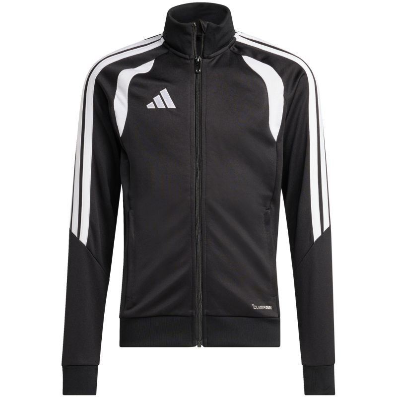 Dětská fotbalová mikina adidas Tiro 26 League Training černá JY7202 Tato dětská fotbalová mikina adidas je ideální na trénink. stojáček. zip po celé délce. vypasovaný střih. technologie climacool odvádí a rozptyluje pot. pruhy na rukávech. decentní logo. rychleschnoucí vlákna. materiál: 100% recyklovaný polyester.
