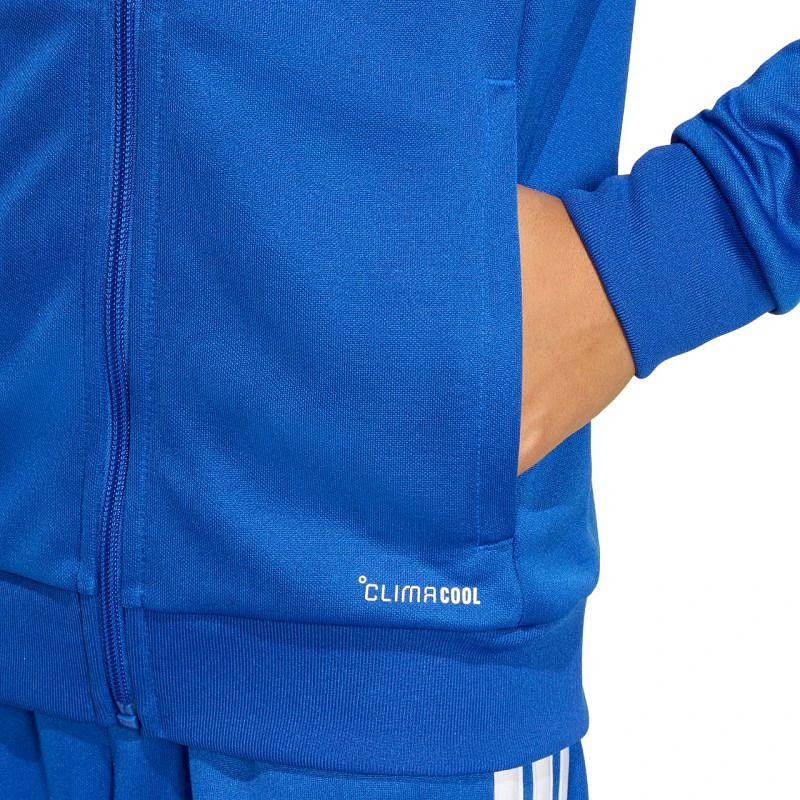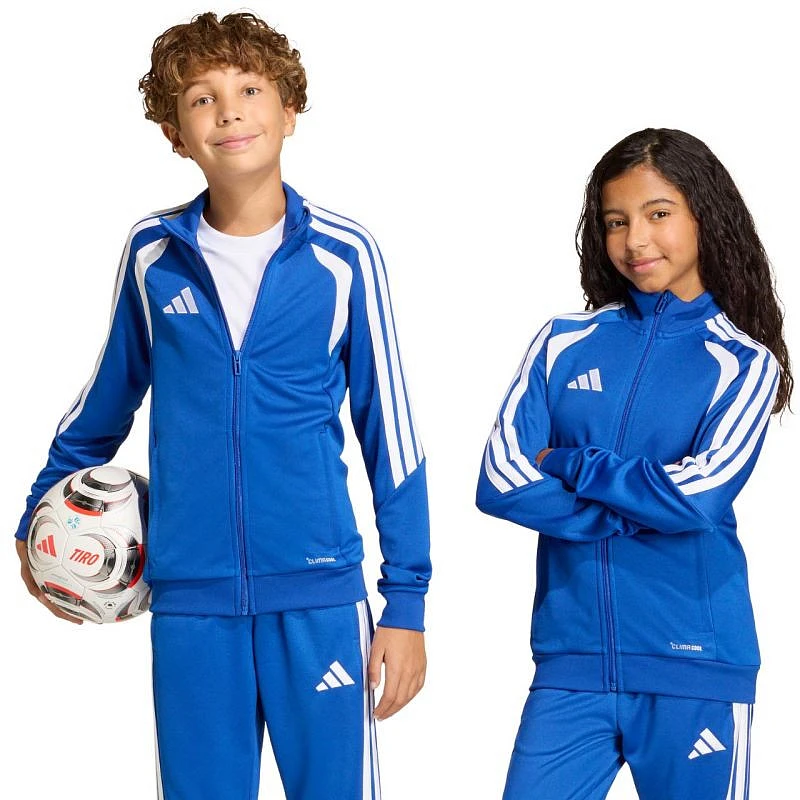 Dětská mikina adidas Tiro 26 League Training modrá JY7199 Tato dětská fotbalová mikina adidas je ideální na trénink. stojáček. zip po celé délce. přiléhavý střih. technologie climacool odvádí a rozptyluje pot. pruhy na rukávech. decentní logo. rychleschnoucí vlákna. materiál: 100% recyklovaný polyester.