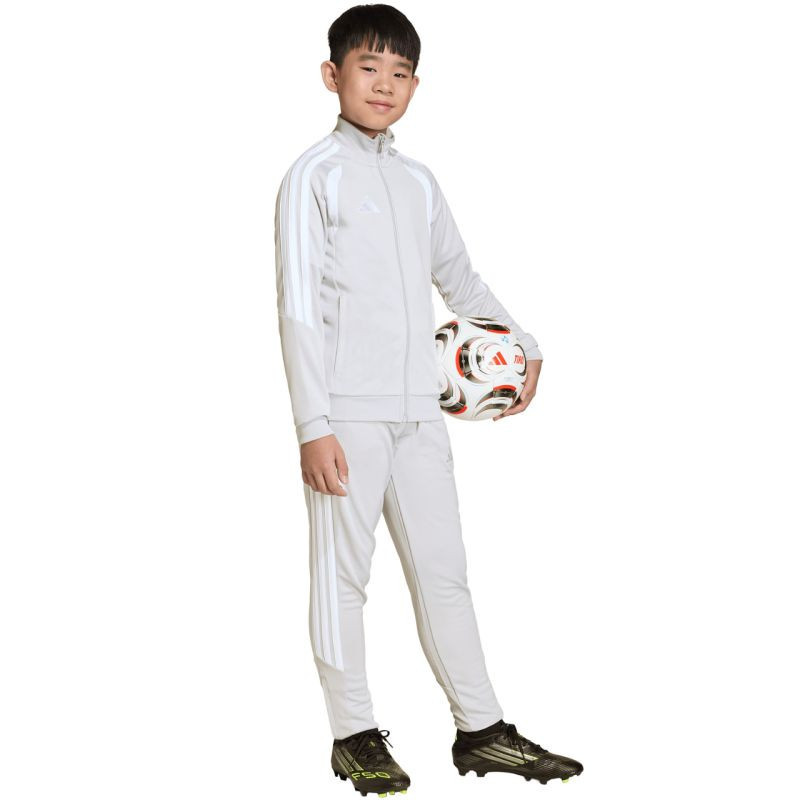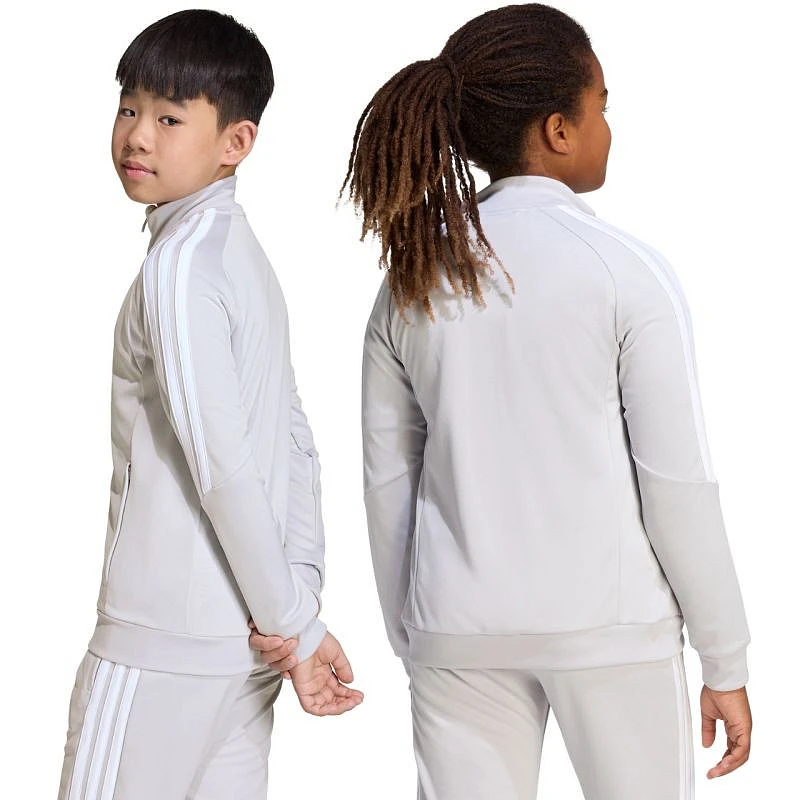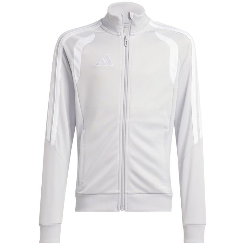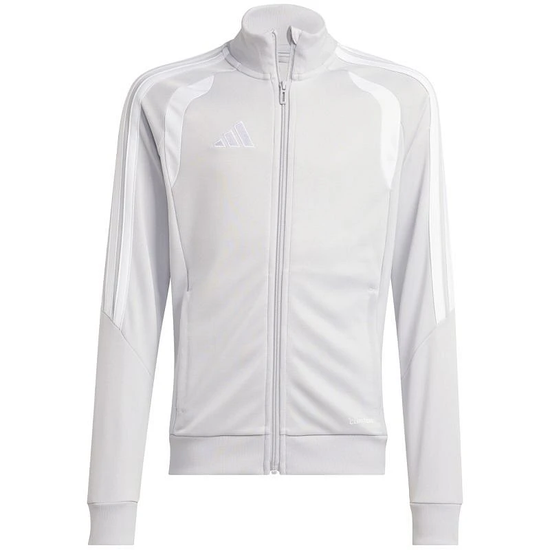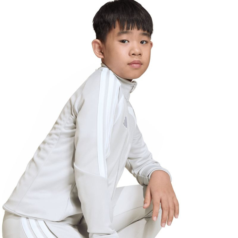 Bluza pro děti adidas Tiro 26 League Training jasnoszara JY7198 Bluza piłkarska adidas przeznaczona dla dzieci sprawdzi się podczas treningów. Stójka. Zamek na całej długości. Dopasowany krój. Technologia Climacool odprowadza i rozprasza pot. Paski na rękawach. Subtelne logo. Szybkoschnące włókna. Materiał: 100% poliester z recyklingu.