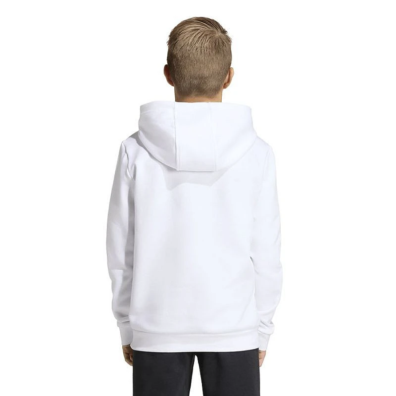 Dětská mikina adidas Entrada 26 Hoody bílá JZ6561 Dětská mikina adidas Entrada je nezbytnou výbavou každého mladého fotbalisty. Na omak měkká konstrukce s prodyšnou bavlnou a odolným polyesterem, který nedráždí pokožku. Zateplená vnitřní část. Klasický střih umožňuje plný rozsah pohybu. Přední kapsa. Integrovaná nenastavitelná kapuce chránící hlavu před nepříznivými vlivy. Žebrované manžety a spodní lem. Vyšívané logo výrobce. Materiál: 70% bavlna, 30% recyklovaný polyester.