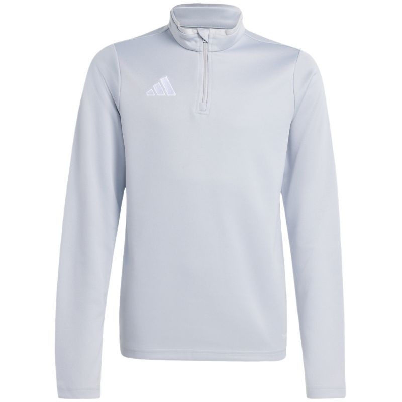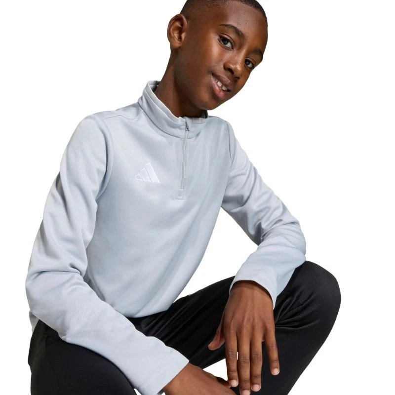 Dětská mikina adidas Entrada 26 Training Top světle šedá JZ6637 Tato dětská mikina od značky adidas je ideální na trénink, má střih na míru, elastické manžety, malé vyšívané logo adidas, zip v délce 1/4. Technologie Climacool udržuje děti v chladu a suchu díky odvodu potu. Materiál: 100% recyklovaný polyester.