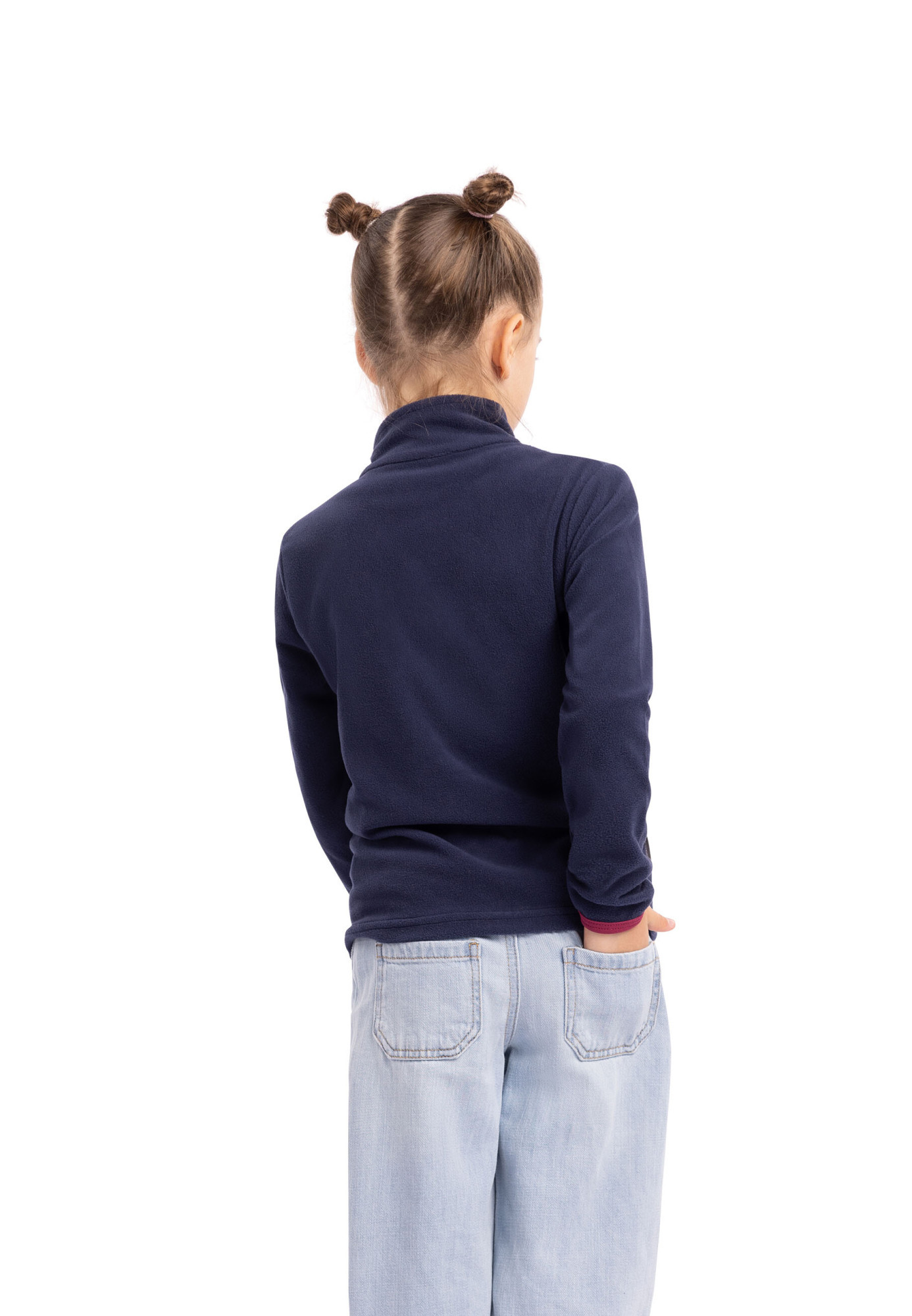 Mikina má vyšší stojáček u krku se zapínáním na 1/2 zip.