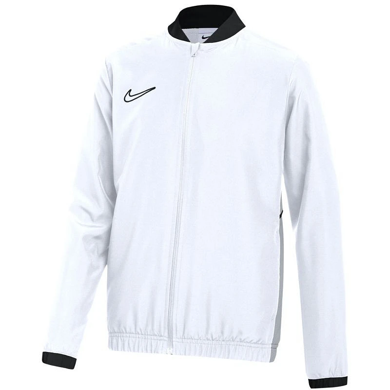 Bluza dla dzieci Nike Dri-Fit Academy 25 biała FZ9851 100 Bluza piłkarska Nike przeznaczona dla dzieci sprawdzi się podczas treningów. Zamek na całej długości. Dopasowany krój. Technologia Dri-FIT pomaga osuszać skórę i zwiększa wygodę. Konstrukcja panelu bocznego ma bardziej wydajny wzór, którego produkcja generuje mniejszą ilość odpadów. Kieszenie zapinane na zamek. Niska stójka. Materiał: 100% poliester z recyklingu