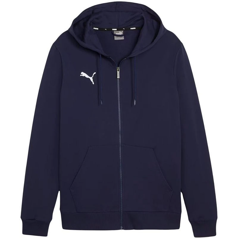 Dětská mikina Puma teamGoal Casuals s kapucí tmavě modrá 658596 06. Dětská mikina Puma pro každodenní nošení. regular fit. měkký materiál. prostorná nenastavitelná kapuce. regular fit s žebrovanými manžetami. malé logo. fotbalová kolekce Team Goal. zip po celé délce. otevřené boční kapsy. hlavní materiál: 100% bavlna.