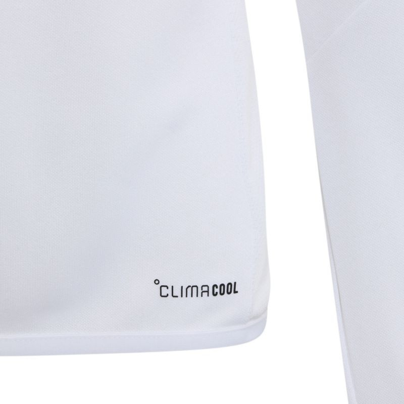 Dětská fotbalová mikina adidas Tiro 26 League Training Top bílo-černo-červená KR0370 Tato dětská fotbalová mikina adidas je ideální na trénink. Krátký zip s ochrannou nášivkou na bradě. Přizpůsobený střih. Technologie Climacool je funkční řešení, které vás udrží v chladu, suchu a soustředění na hru. Elastické lemování na lemu a manžetách. Kontrastní síťované vsadky. Pruhy na rukávech. Jemné logo na hrudi. Materiál: 100% recyklovaný polyester.