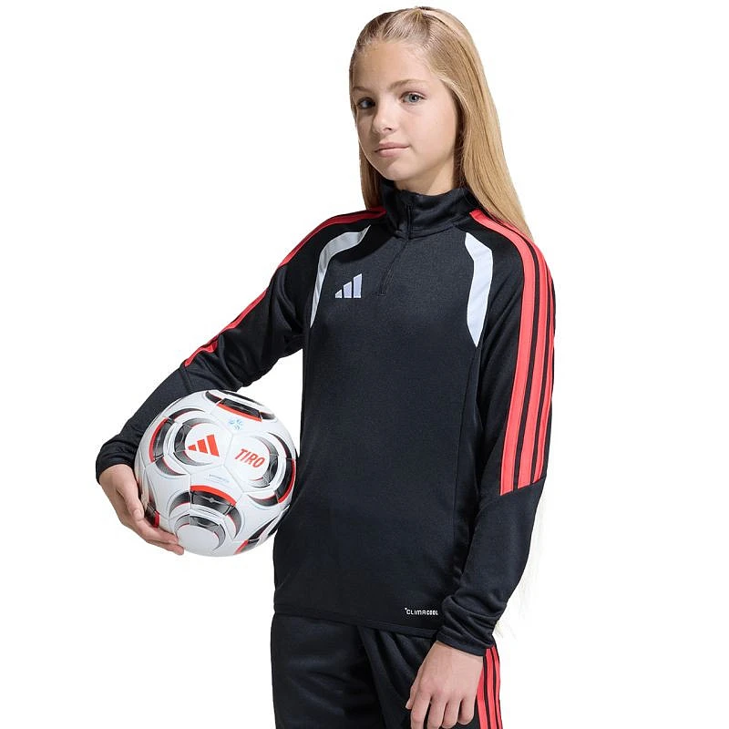 Dětská fotbalová mikina adidas Tiro 26 League Training Top černo-bílo-červená JY7159 Tato dětská fotbalová mikina adidas je ideální tréninkový top. Krátký zip s ochrannou nášivkou na bradě. Přizpůsobený střih. Technologie Climacool je funkční řešení, které vás udrží v chladu, suchu a soustředění na hru. Elastické lemování na lemu a manžetách. Kontrastní síťované vsadky. Pruhy na rukávech. Jemné logo na hrudi. Materiál: 100% recyklovaný polyester.