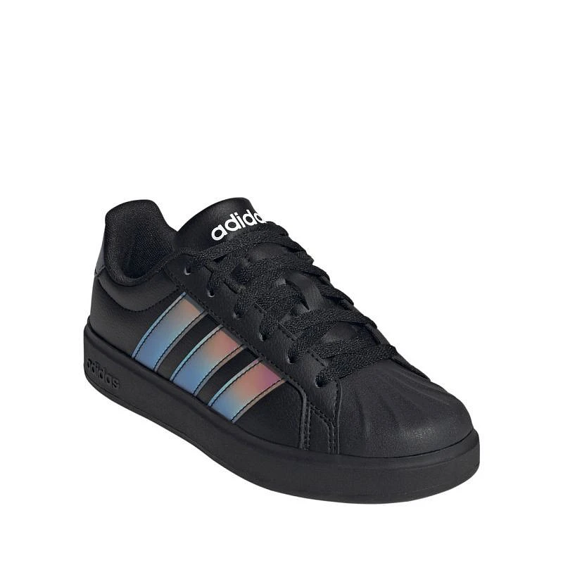 Buty dla dzieci adidas Streettalk czarne JQ1806 Buty dla dzieci adidas przeznaczone są do codziennego użytkowania. Syntetyczna cholewka. Osłona palców w kształcie muszli. Tekstylna wyściółka podnosi komfort noszenia. Klasyczne sznurowanie ułatwiające dopasowanie. Gumowa podeszwa zewnętrzna.
