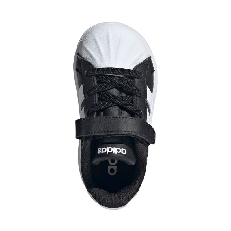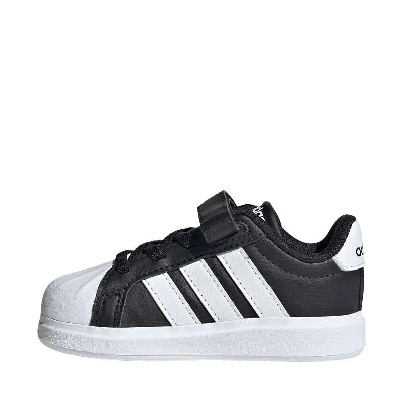 Dětská obuv adidas Streettalk černá JQ8605 Dětská obuv adidas je určena pro každodenní nošení. Syntetický svršek. Mušlový tvar špičky. Textilní podšívka pro větší pohodlí. Zapínání na suchý zip a pružné pásky připomínající klasické šněrování. Gumová podrážka.
