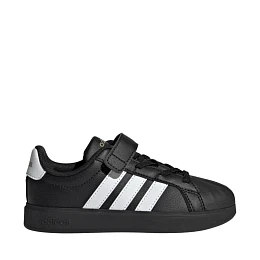 Dětská obuv adidas Streettalk black JS5055 Dětská obuv adidas je určena pro každodenní nošení. Syntetický svršek. Mušlový tvar špičky. Textilní podšívka pro větší pohodlí. Zapínání na suchý zip a pružné pásky připomínající klasické šněrování. Gumová podrážka.