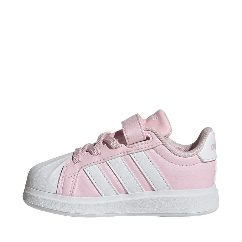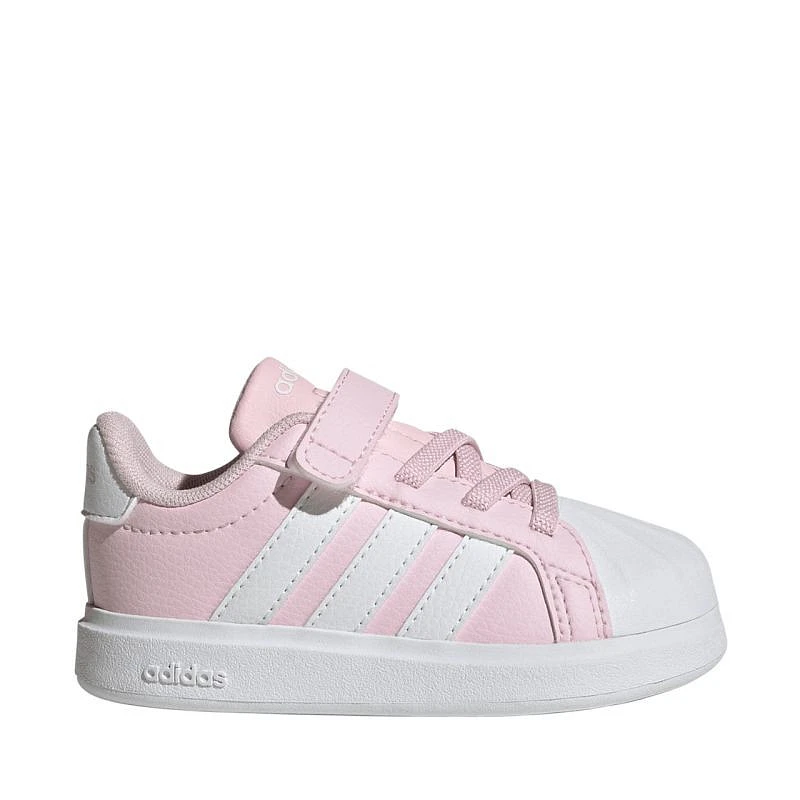 Dětská obuv adidas Streettalk pink JQ8603 Dětská obuv adidas je navržena pro každodenní nošení. Syntetický svršek. Mušlový tvar špičky. Textilní podšívka pro větší pohodlí. Zapínání na suchý zip a pružné pásky připomínající klasické šněrování. Gumová podrážka.