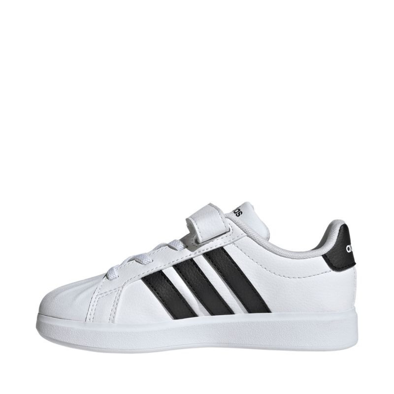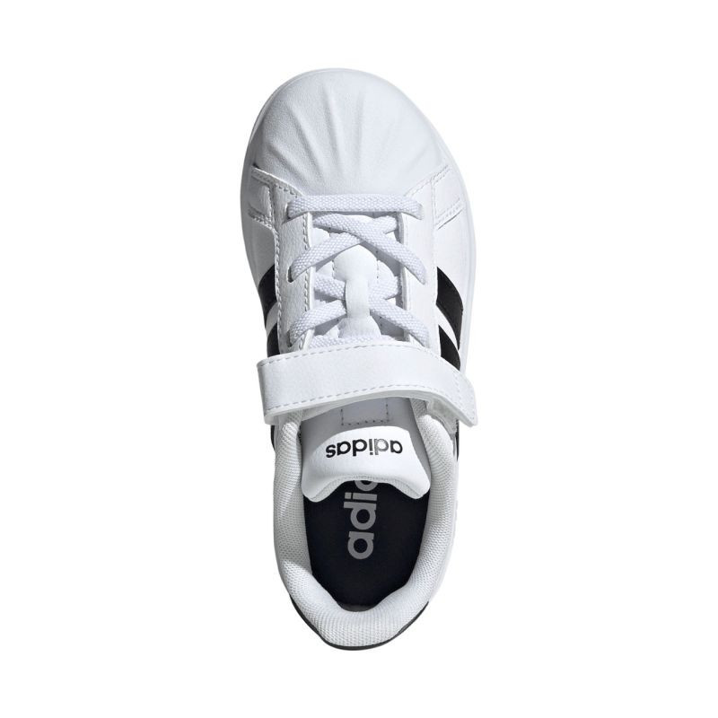 Buty dla dzieci adidas Streettalk EL C JQ6144 Buty dla dzieci adidas przeznaczone są do codziennego użytkowania. Syntetyczna cholewka. Osłona palców w kształcie muszli. Tekstylna wyściółka podnosi komfort noszenia. Zapięcie na rzep oraz elastyczne gumki przypominające klasyczne sznurowanie. Gumowa podeszwa zewnętrzna.