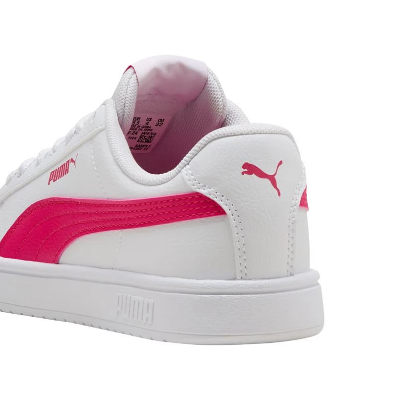 Buty dla dzieci Puma Rickie Classic biało-różowe 394252 24 Buty dla dzieci Puma sprawdzą się w czasie codziennego użytkowania. Konstrukcja ze skóry ekologicznej. Miękka, tekstylna wyściółka i wkładka z pianki. Klasyczne sznurowanie. Gumowa podeszwa zewnętrzna zadba o przyczepność do podłoża.