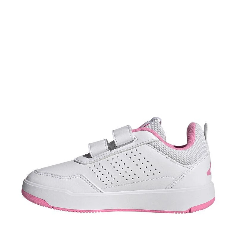 Buty dla dzieci adidas Tensaur Sport 3.0 biało-różowe JQ1844 Dziecięce buty adidas sprawdzą się podczas codziennych aktywności. Lekki model z regulowanymi paskami na rzepy ułatwia zakładanie butów, znacznie skracając czas przygotowywania się do wyjścia na spacer. Klasyczna cholewka ze skóry syntetycznej. Tekstylne wstawki po bokach, otwory wentylacyjne oraz materiałowy język. Miękka wyściółka i wkładka. Niebrudząca, gumowa podeszwa zewnętrza.