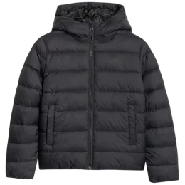 Kurtka puchowa dla dzieci 4F U0704 głęboka czerń 4FJWAW25TDJAU0704 20S Kurtka dla dzieci 4F sprawdzi się w okresie przejściowym. Dane techniczne:· Materiał główny: 100% poliamid· Podszewka: 100% poliester· Wypełnienie: 100% poliester (puch syntetyczny)· Regularny krój - wygodnie dopasowuje się do sylwetki, zapewniając swobodę ruchów· Standardowy fason - długość sięgająca do bioder dla codziennej wygody· Klasyczne poziome pikowanie – nadaje kurtce ponadczasowy wygląd· Przeznaczenie - idealna na cieplejsze dni w okresie przejściowym· Hydrofobowa powłoka – ogranicza wchłanianie wilgoci, zwiększając ochronę przed lekkim deszczem· Technologia 4FWarm - wspiera komfort cieplny w zmiennych warunkach pogodowych· Zintegrowany kaptur bez regulacji – zapewnia podstawową ochronę przed wiatrem· Wysoki kołnierz - dodatkowe zabezpieczenie szyi przed chłodem· 2 kieszenie boczne - wygodne miejsce na drobne przedmioty lub ogrzanie rąk· Jednokierunkowy zamek główny z wewnętrzną plisą przeciwwiatrową – ogranicza przenikanie zimnego powietrza· Dół bez regulacji - prosty krój sprzyjający swobodnemu noszeniu· Odblaski – poprawiają widoczność i bezpieczeństwo po zmroku· Pikowane panele z ociepliną poliestrową – zapewniają optymalny komfort cieplny