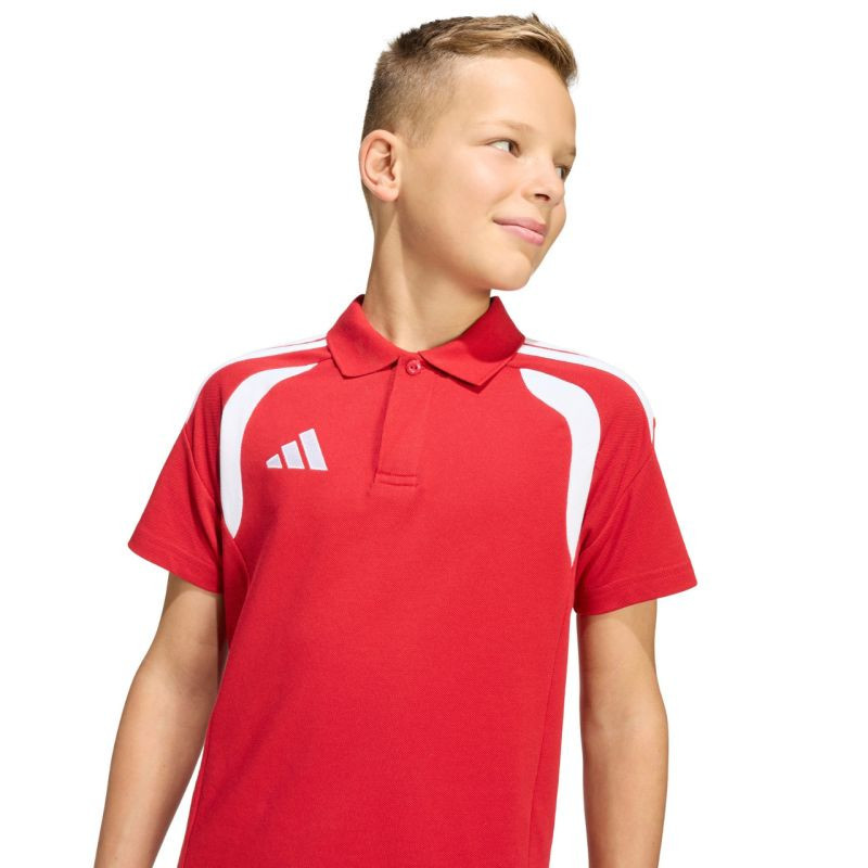 Dětská polokošile adidas Tiro 26 League červená KF3408 Toto dětské tričko adidas je ideální pro fandění u postranní čáry a cestování s týmem na zápasy. Z kolekce Tiro. Límec a proužek na knoflíky. regular střih. vyšívané logo. pletenina Pique. materiál: 70% bavlna, 30% recyklovaný polyester.