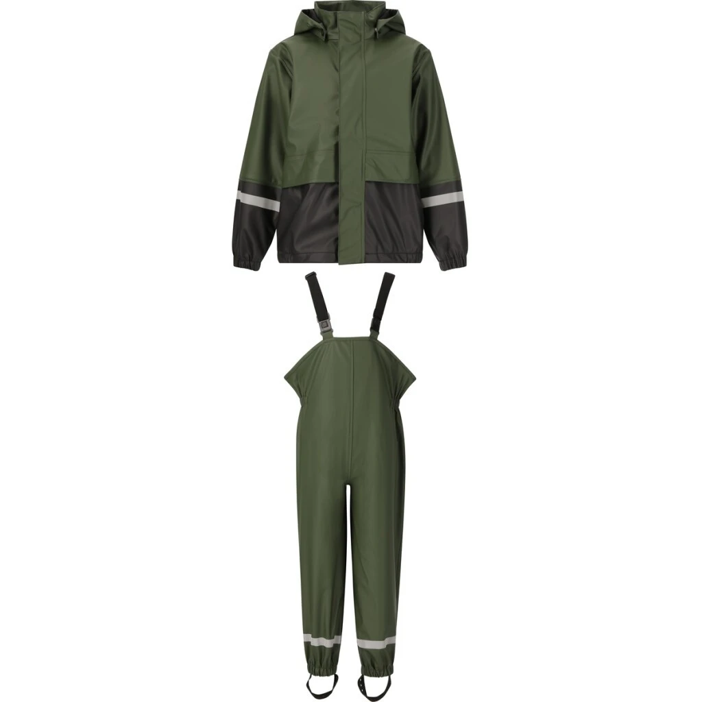 Oba kusy jsou vyrobeny z odolného a voděodolného materiálu, který spolehlivě chrání před deštěm a zároveň je dostatečně flexibilní pro volný pohyb dětí.