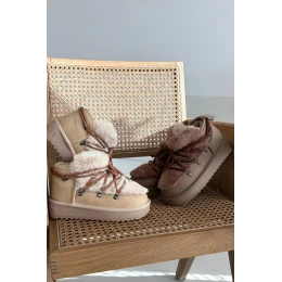 Dětské a mládežnické sněhule s kožešinou D Franklin DFSH370011 Béžové