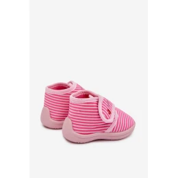 Dětské bačkory na suchý zip s proužky – růžové Lavelle