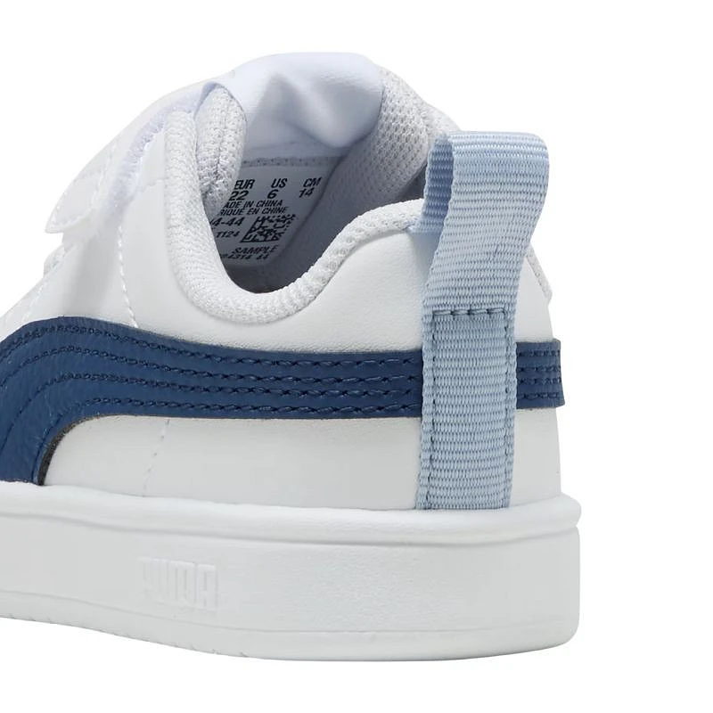 Dětská obuv Puma Rickie AC+ Inf bílo-modrá 384314 44 Dětská obuv Puma pro každodenní nošení. Konstrukce z ekokůže. Perforace v přední části. Měkká textilní podšívka a pěnová stélka. Elastické gumičky připomínající šněrování. Přídavný pásek na suchý zip. Gumová podrážka.