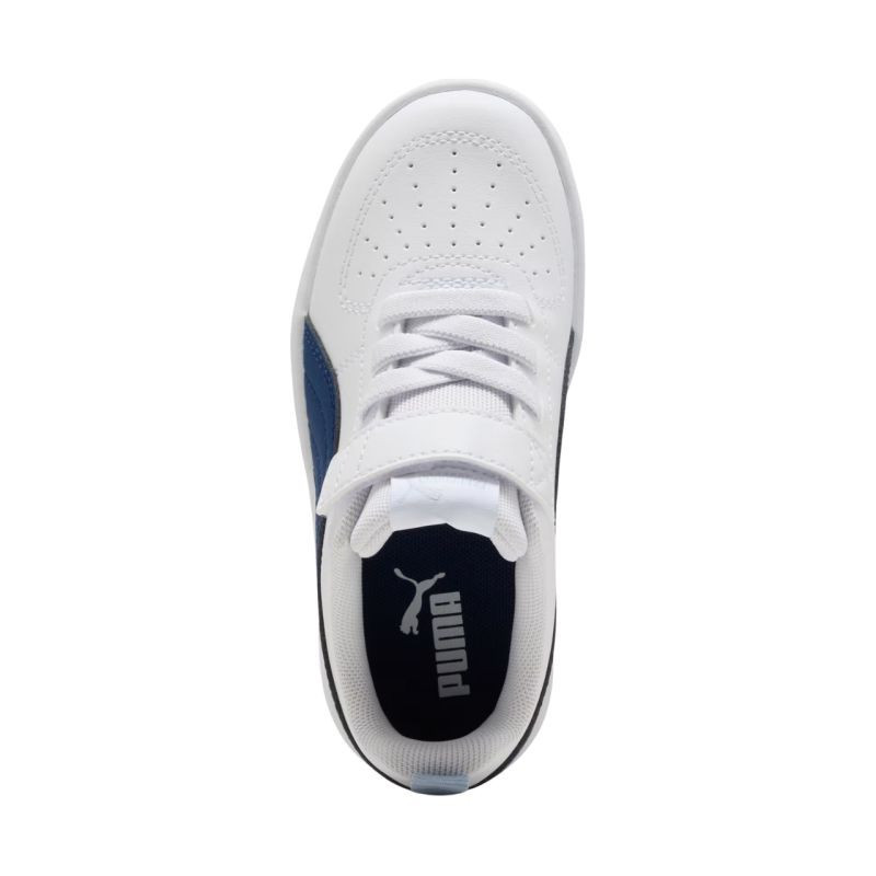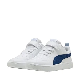 Puma Rickie AC PS 385836 44 Dětská obuv Puma pro každodenní nošení. Konstrukce z ekokůže. Perforace v přední části. Měkká textilní podšívka a pěnová stélka. Elastické gumičky připomínající šněrování. Přídavný pásek na suchý zip. Neznačící gumová podrážka zabraňující vzniku stop na podlaze.