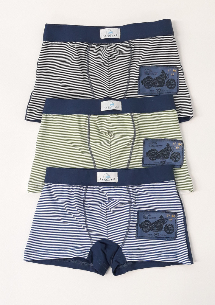 Dětské boxerky Gasolino. Velmi příjemný a pružný materiál chlapeckých boxerek, krásné a jemné barvy doladěné potiskem obrázků. Horní obvod tvoří pružná širší guma potažená látkou pro komfortní nošení. Obvod nohaviček je volně přeložen, a proto se nezařezává. Do vnitřního dílu je zapracován bavlněný klínek. Barva Vám bude vybrána náhodně nebo můžete barvu poznačit do poznámky. Cena je za jeden kus boxerek.