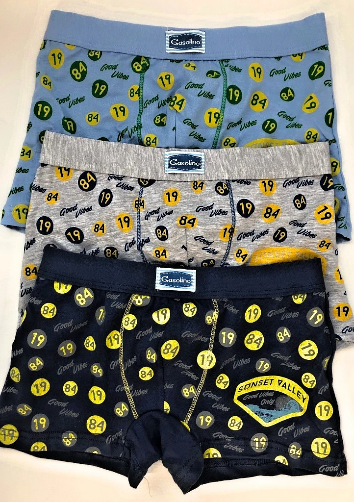 Dětské boxerky Gasolino. Velmi příjemný a pružný materiál chlapeckých boxerek, krásné a jemné barvy doladěné potiskem obrázků. Horní obvod tvoří pružná širší guma potažená látkou pro komfortní nošení. Obvod nohaviček je volně přeložen, a proto se nezařezává. Do vnitřního dílu je zapracován bavlněný klínek. Barva Vám bude vybrána náhodně nebo můžete barvu poznačit do poznámky. Cena je za jeden kus boxerek.