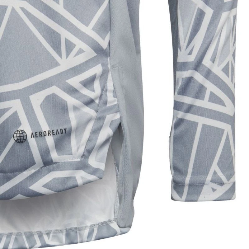 Dres adidas Condivo 22 s dlouhým rukávem šedý HB1646 Dětské brankářské tričko adidas posílí vaši obranu. Rychleschnoucí tkanina. Technologie Aeroready odvětrává tělo a odvádí vlhkost. Pravidelný střih. Kontrastní grafika. Prodloužená záda. Malé boční rozparky. Výstřih do V. Žebrované vsadky na rukávech a v podpaží. Pruhy na ramenou. Mírně kratší rukávy. Malé logo. Materiál: 100% recyklovaný polyester.