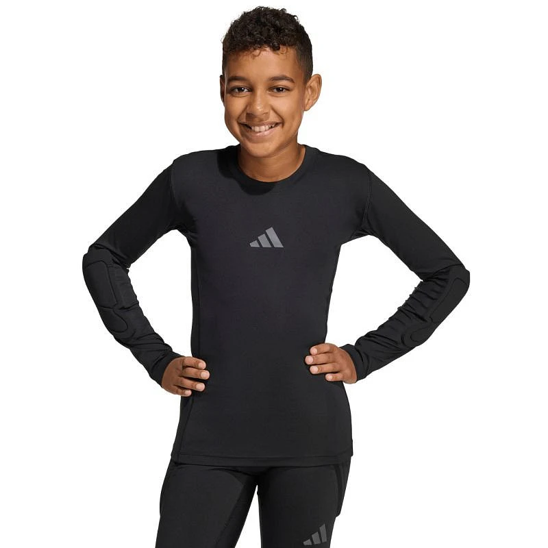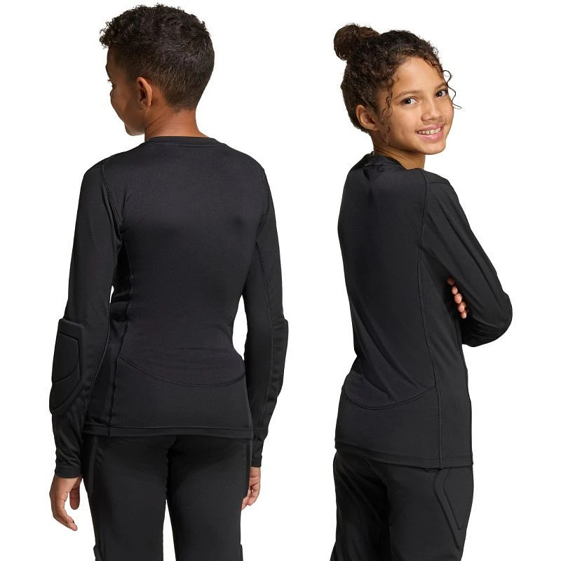 Koszulka bramkarska dla dzieci adidas Padded Goalkepper Longsleeve czarna KA1678 Koszulkę dla dzieci z długim rękawem adidas zaprojektowano z myślą o podniesieniu poziomu gry bramkarskiej. Konstrukcja ze strategicznie rozlokowanymi ochraniaczami na łokciach. Kompresyjny krój. Materiał o podwójnym splocie. Subtelne logo. Materiał: 83% poliester z recyklingu, 17% elastan